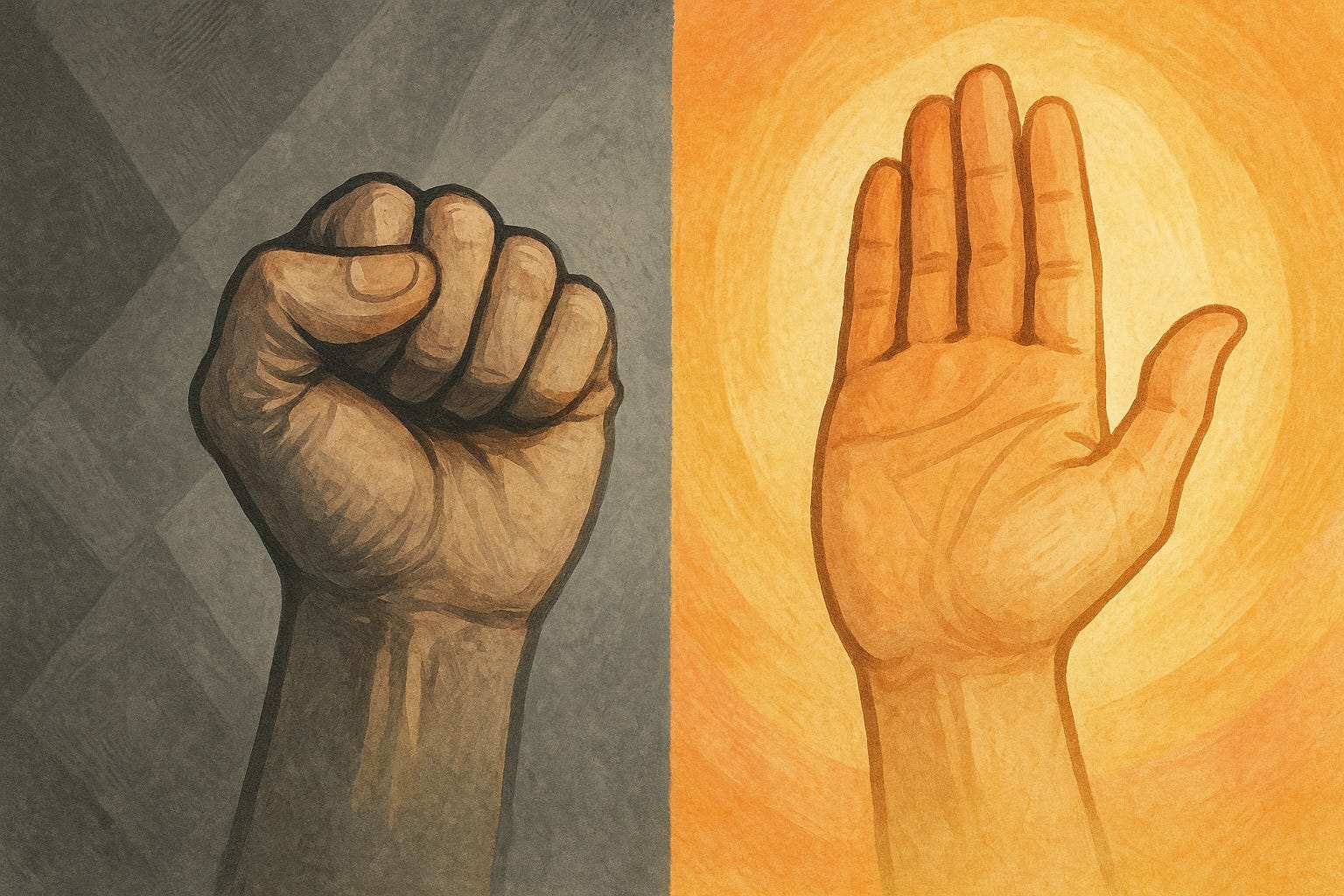 Make a fist—right now, with your dominant hand. Feel how it lends itself to saying “no.” Open your hand and relax it. Feel how it lends itself to saying “yes.” Try to reverse it—make a fist and say “yes,” or open your hand and say “no.” There is a contradiction there. The contraction resists the “yes.” The openness resists the “no.”